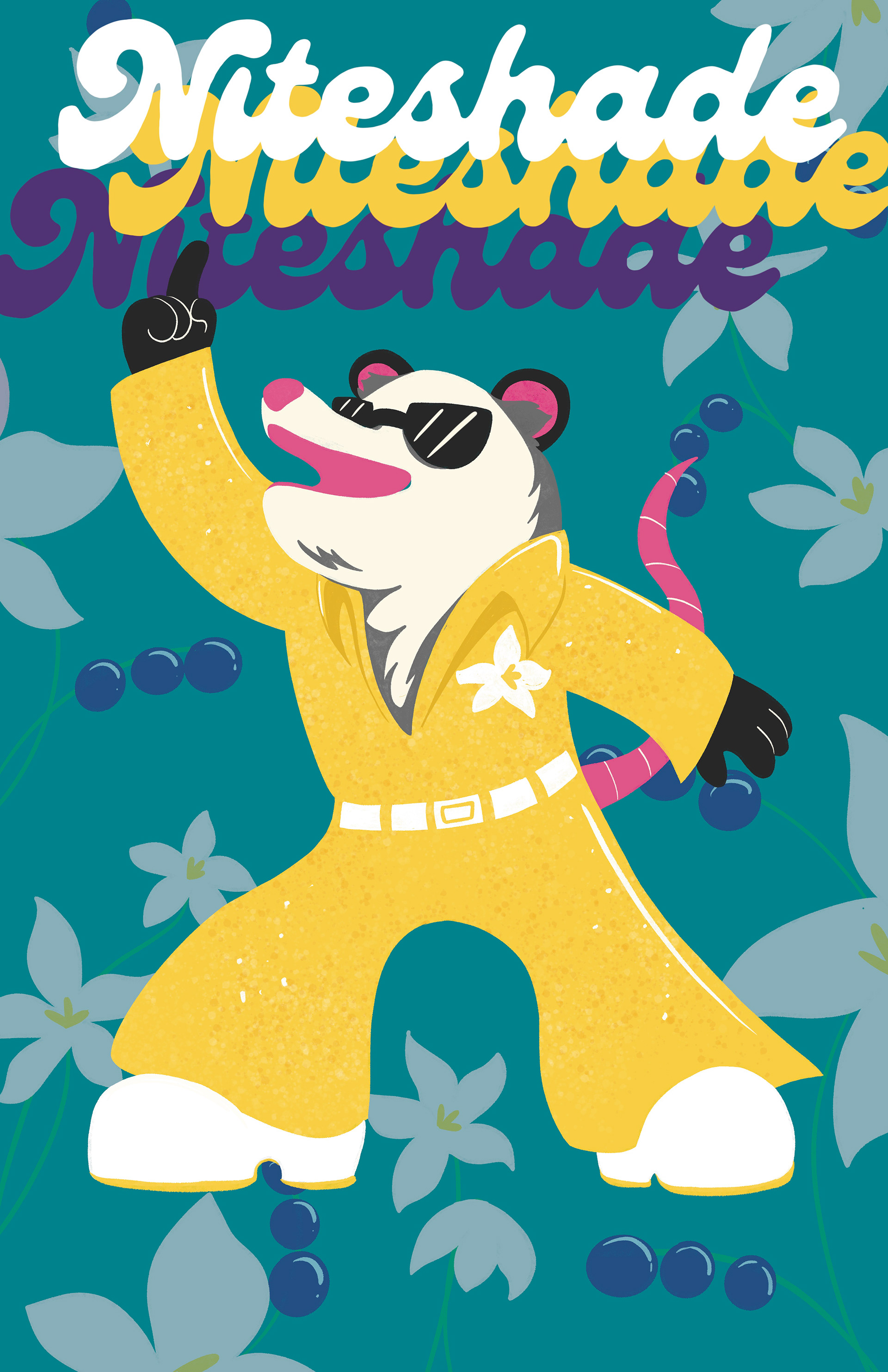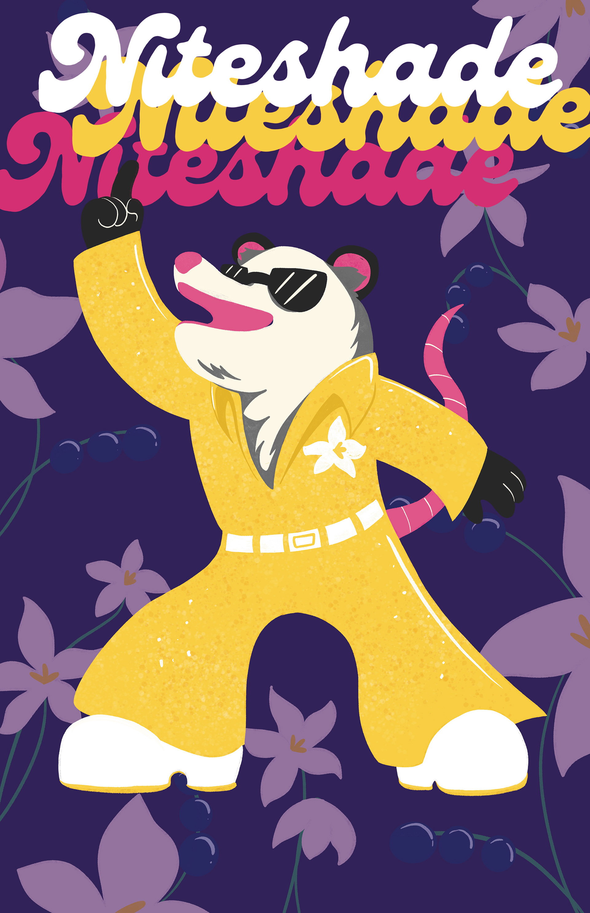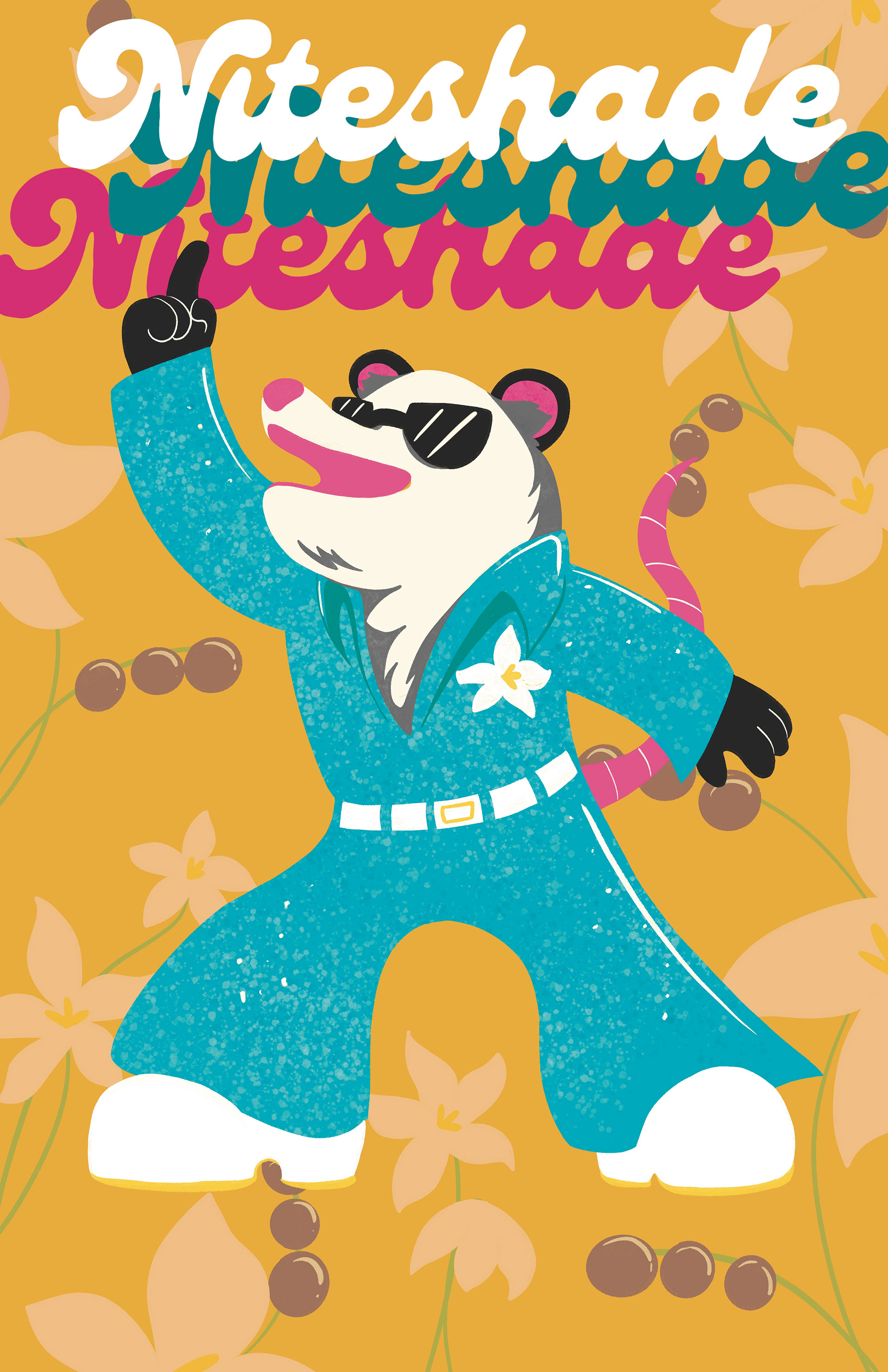 Local Greater Boston jam band Niteshade was in need of a poster to kick off their residency at the popular Cambridge music venue Middle East. The band members were looking for a retro aesthetic that called back to psychedelic illustration style of the 1960s-70s. Three color variants were created for the final design, one in dark purple the band used in previous posters, and two in more 70s-era colors—specifically the orange, yellow and and green tones.
